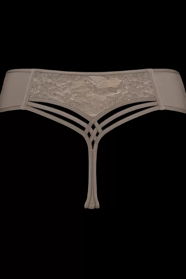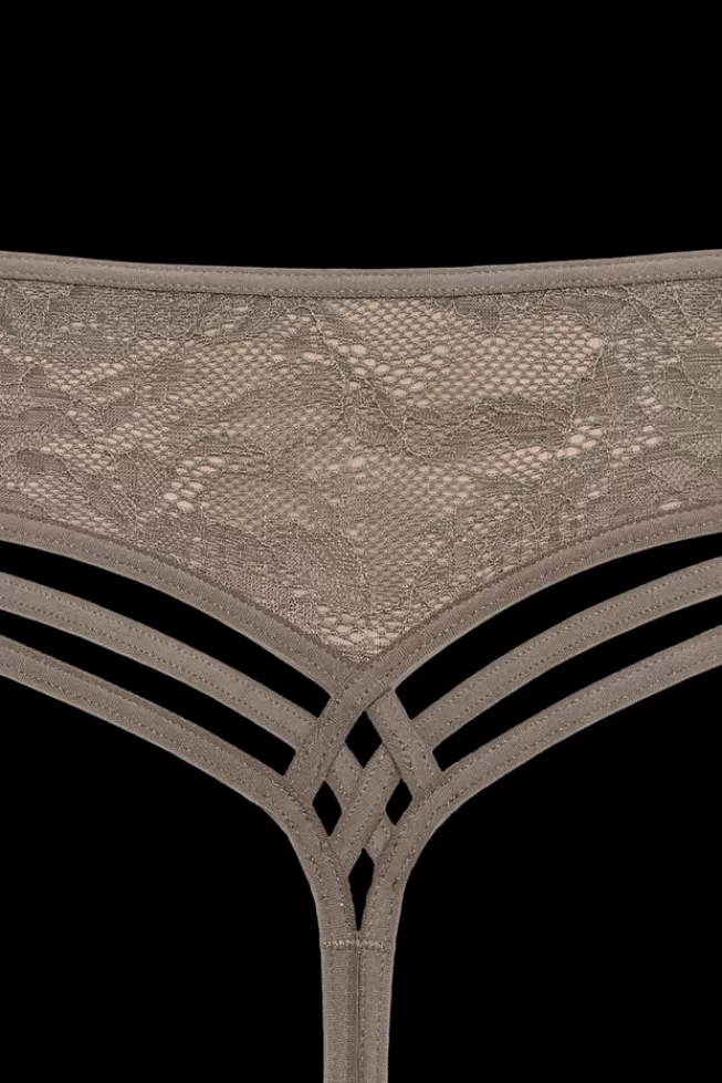 Deze sexy string benadrukt je rondingen door het bovenste deel van je heupen te bedekken. Hij is gemaakt van gerecyclede microvezelstof, gecombineerd met prachtige, ton-sur-ton kant. De verleidelijke pasvorm van deze designer string laat je billen bloot. Als finishing touch heeft deze string sensuele bandjes die je achterwerk in de schijnwerpers zetten. Combineer het met een van de bijpassende bh’s en je hebt de perfecte eco-friendly lingerie set.