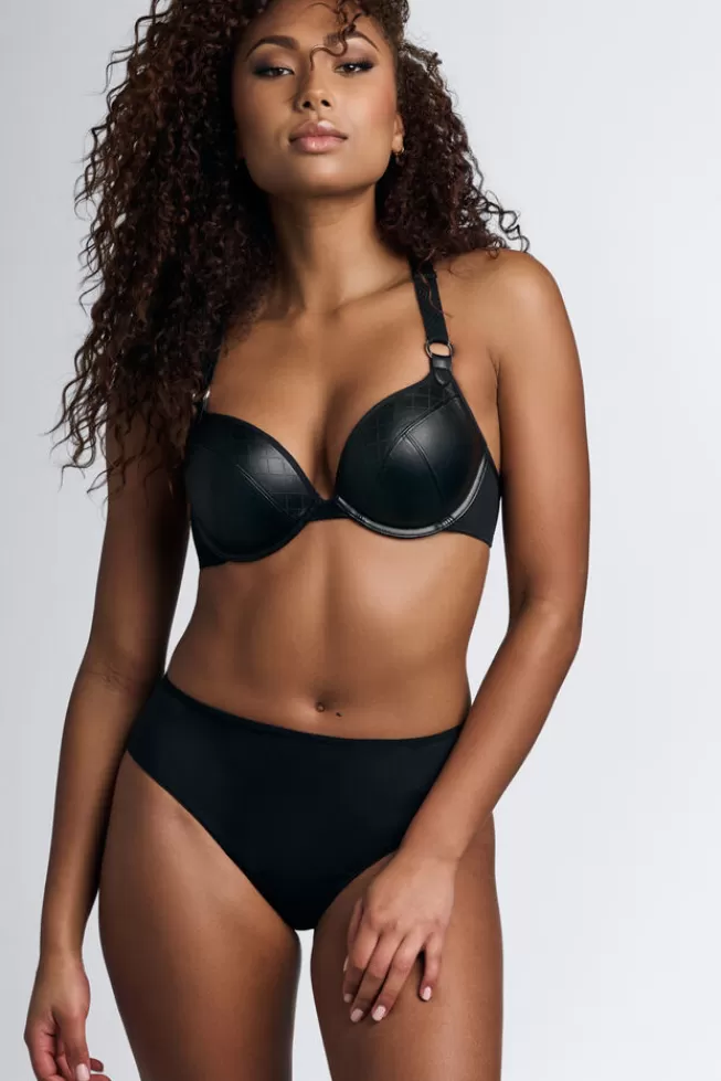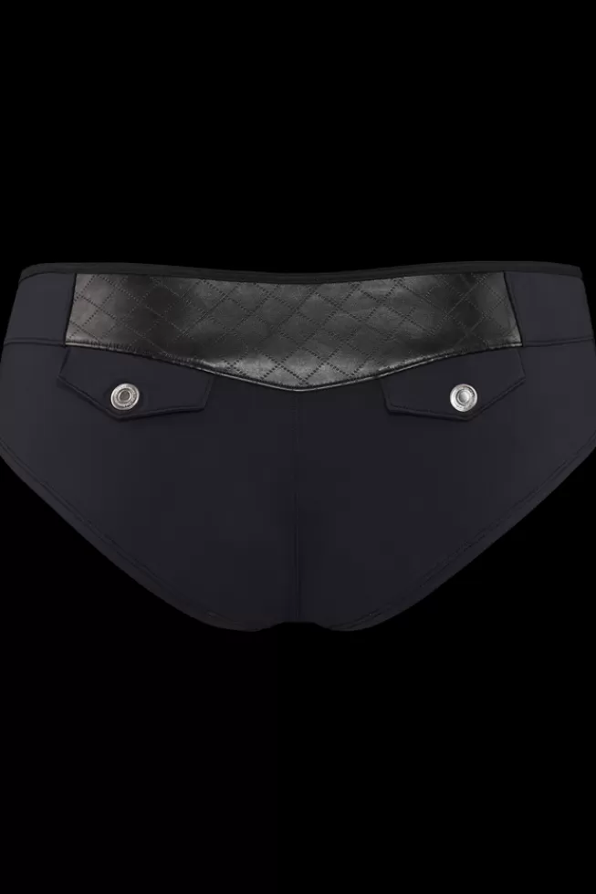 Stoere kleine zakjes op je billen herinneren aan de vrouwelijke misdaadfilm Femme Fatale. Stijlvol leer met een mooie reliëfprint geeft een stijlvolle touch en staat voor de kracht van promiscuïteit. Deze brazilian brief is 8 cm breed aan beide zijden. Heup en lies zijn gedeeltelijk bedekt, maar je buik en de onderkant van je billen juist niet. Kies dit model voor bedekte, maar glamoureuze billen.