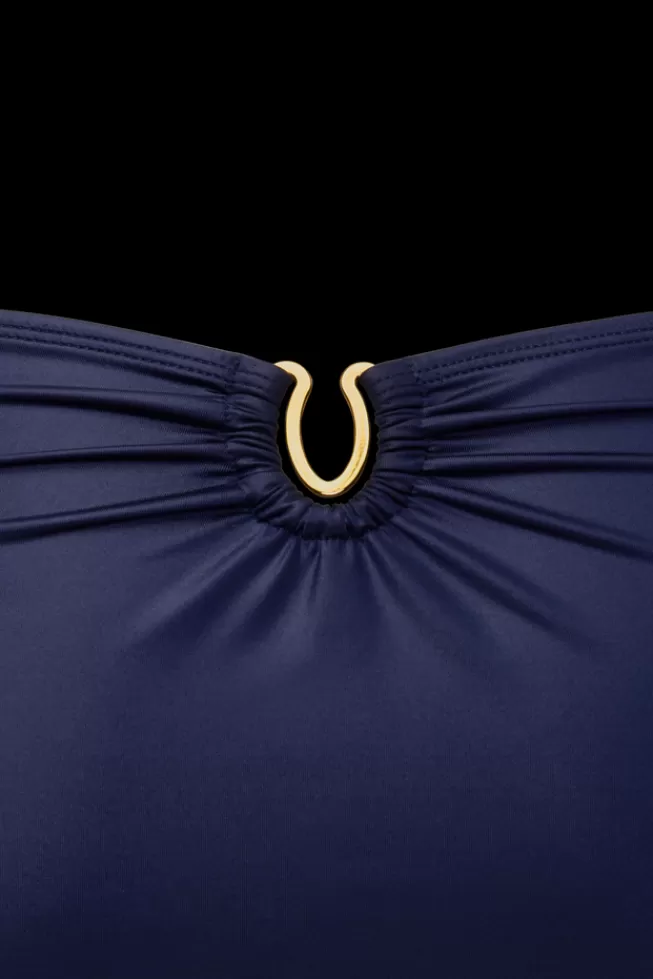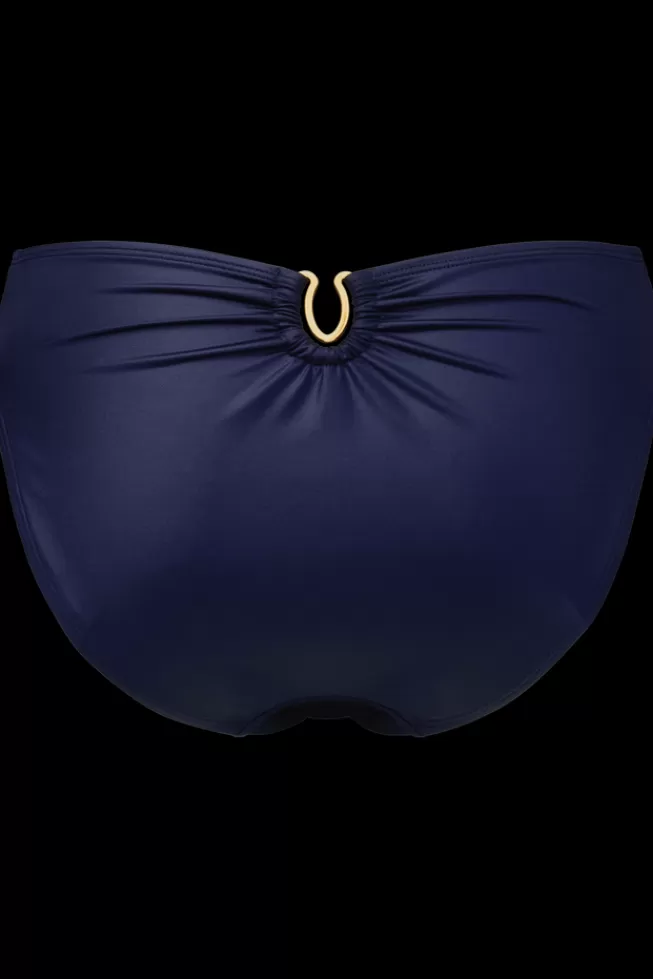 Deze flatterende bikinibroekjes zijn geschikt voor alle lichaamstypes. De zijkanten meten 5 centimeter en bieden comfortabele bedekking van je billen en heupen. Deze designer bikinibroekjes zijn gemaakt van glanzende microvezelstof en gevoerd met gerecycled materiaal. Een goudkleurig, hoefijzervormig ornament siert de achterkant en creëert speelse plooien die je rondingen omlijsten. Combineer ze met een van de bijpassende bikinitops om je glamoureuze strandlook compleet te maken. Klaar om te pronken!