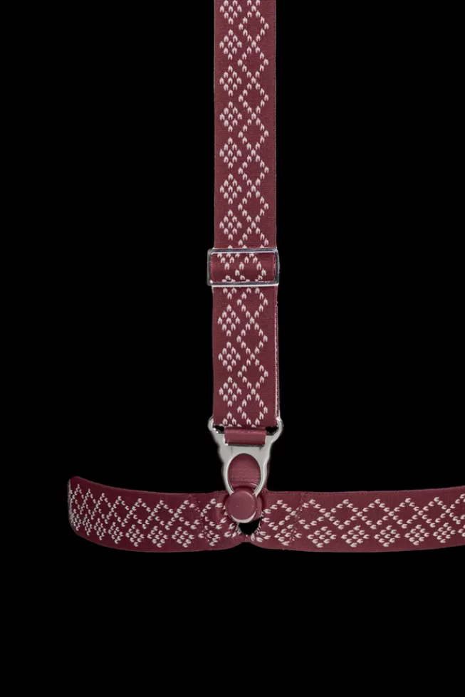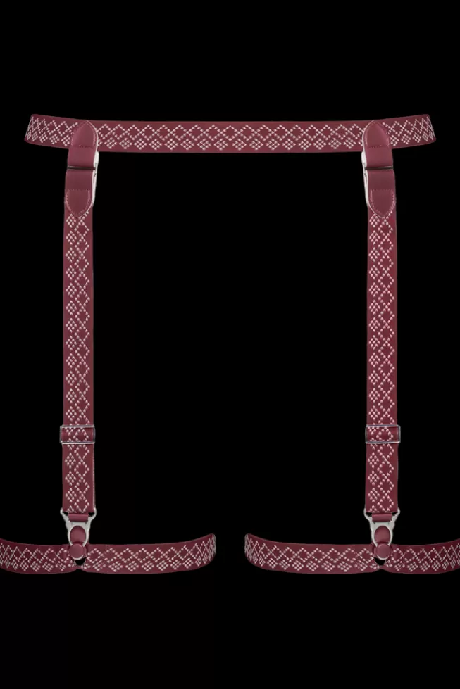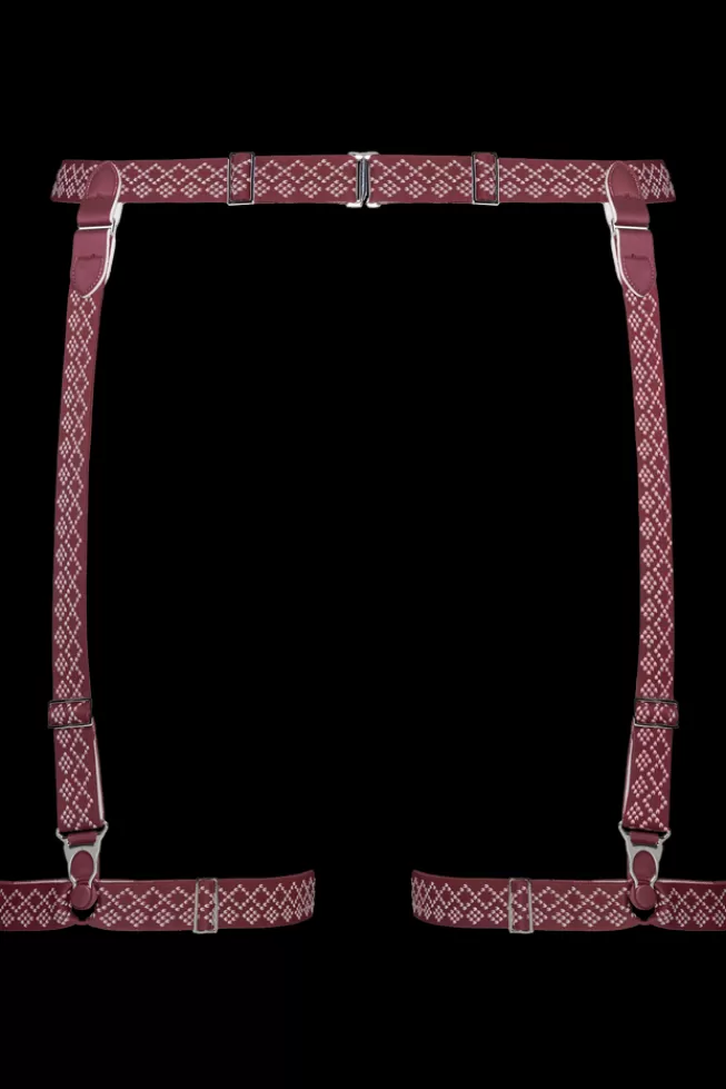 Deze cabernet red jarretel is ontworpen om je lingerie set naar een hoger niveau te brengen met deze perfecte accessoire. Voorzien van clips aan de bandjes voor extra gemak, houdt het stevig je kousen op hun plaats. De tailleband biedt gedeeltelijke bedekking van je buik en je boven billen, wat zorgt voor een flatterende en comfortabele pasvorm. Gemaakt van gerecyclede stof, pronkt dit unieke stuk met een digitaal geprint breiwerkpatroon, wat een milieuvriendelijke touch toevoegt. Met jacquard geweven bandjes en details van imitatieleer roept het de geest op van een ontdekkingsreiziger, waardoor het zowel stijlvol als functioneel is. Maak je look compleet en omarm je wilde kant met dit statementstuk.