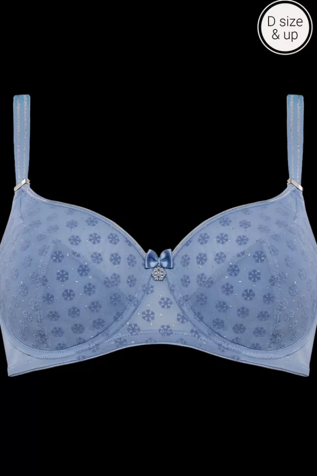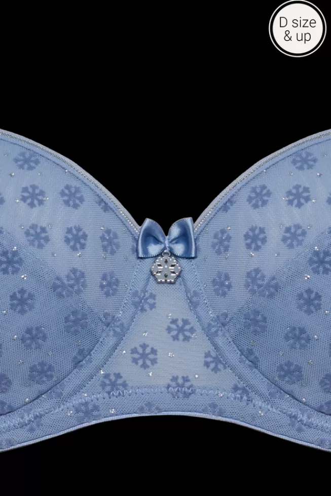 Deze sexy bh heeft een comfortabele pasvorm die een bescheiden decolleté creëert. De licht gevoerde cups van de bh volgen de natuurlijke vorm van je borsten, terwijl de beugels en slimme constructie alle ondersteuning bieden die je nodig hebt. Deze ijsblauwe semi-voorgevormde balconette bh is versierd met niet één, maar twee prints! Kleine zilveren stippen en een schattige flock print sieren de doorschijnende fijne mesh-stof. Meer schitterende zilveren details en een prachtig sneeuwvlok ornament maken het ontwerp compleet. Omarm elegantie en aantrekkingskracht in deze speelse sneeuwvlok print bh!