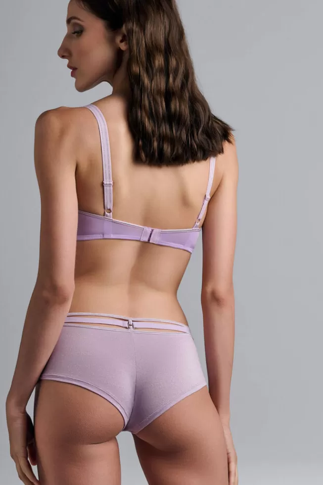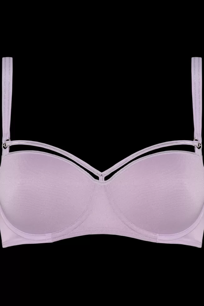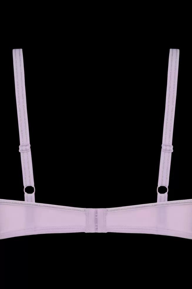 Deze lila balconette bh creëert een subtiel decolleté met de comfortabele en ondersteunende pasvorm. Sensuele bandjes bovenop de cups omlijsten je decolleté. De banden zijn verbonden door zilverkleurige, ruimteschip geïnspireerde ornamenten. Deze sexy bh is gemaakt van lila stof met zilveren lurex om je te laten schitteren. Om ervoor te zorgen dat de bh zacht aanvoelt op je huid, is er stofverzachter aangebracht.